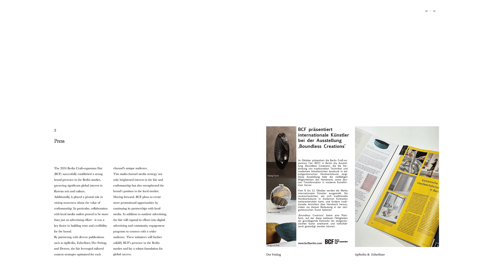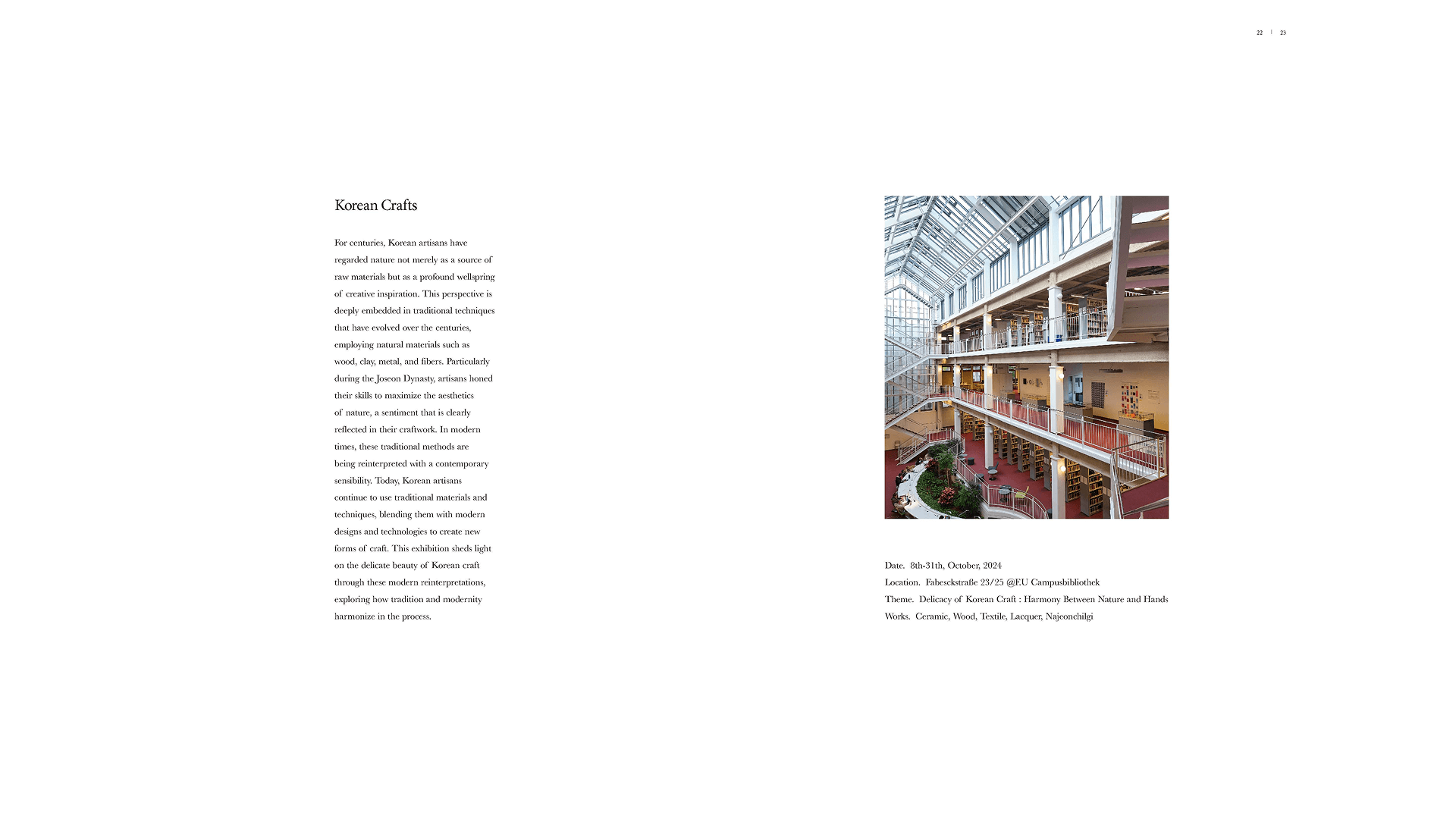 2024 exhibition focuses on Korean crafts. It showcases how traditional techniques have been modernly interpreted and how they intersect with contemporary art. BCF represents the multifaceted aspects of crafts with a group of artists whose practices and works reflect the craftsmanship and heritage spirit that go beyond epoch. With BCF, global artists, curators, and collectors will gather to discover the identity of contemporary crafts and continue active movements to envision the future of the crafts and art industry.